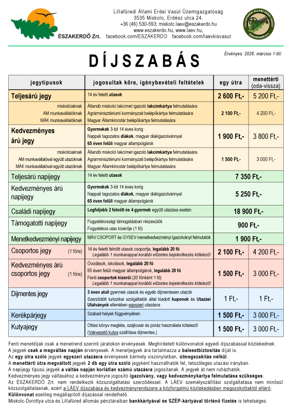 A LÁEV hivatalos díjszabása